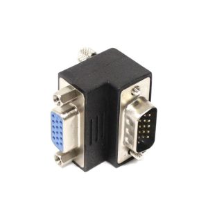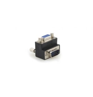 Adaptador VGA Acodado 90º Macho-Hembra. Se puede combinar con una placa SIMON K100-9 para instalar en una caja de puesto de trabajo.