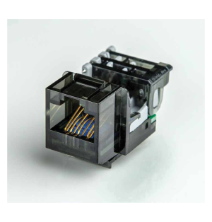Toma UTP RJ45 Cat.6 para transmisión de datos hasta 1Gigabit Ethernet. Terminación sin herramientas Tool-Free. Formato anclaje Keystone largo. Color negro, Marca Brand-Rex ref.C6CJAKU002