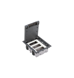 La instalación en suelo técnico no precisa de cubeta. En éste tipo de suelo las cajas se fijan en la placa mediante las garras de fijación metálicas.