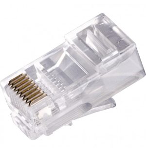Conector macho RJ45 Cat.6 UTP 8 vías para cables rígidos con guía interna para usar con crimpadoras RJ45 standard de 8 contactos. Ref: VARCONUTPC/6MAC