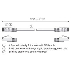 Latiguillo de 4 pares RJ45-RJ45 de Categoría 6A apantallado F/FTP para transmisión de datos hasta 10Gigabit Ethernet, diámetro de 5,7 mm, cubierta libre de halógenos LSZH, color gris. Para otros colores, contactar por correo electrónico o teléfono. Colores disponibles ( Gris, Rojo, Azul, Negro, Verde, Amarillo, Blanco, Lila, Naranja, Rosa ) Marca Excel.