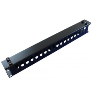Pasahilos horizontal 19″ 1UA, fondo 60 mm, con tapa. Fabricado en chapa de hierro, pintura epoxi color negro RAL 9005. Ref.1007022