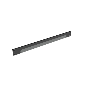 Pasahilos horizontal 19″ 1UA salida de hilos con cepillo abierto. Fabricado en chapa de hierro, pintura epoxi color negro RAL 9005. Ref.1006012
