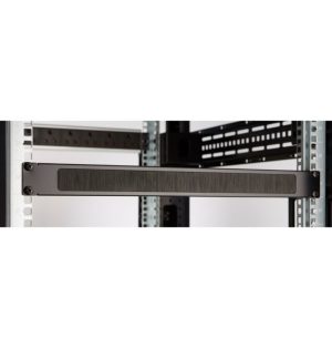 Pasahilos horizontal 19″ 1UA salida de hilos con cepillo cerrado. Fabricado en chapa de hierro, pintura epoxi color negro RAL 9005. Ref. 100-599