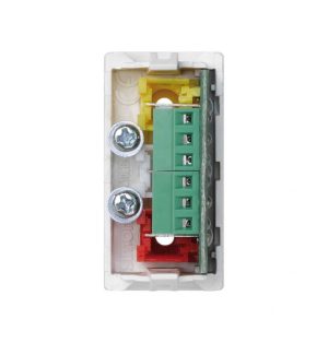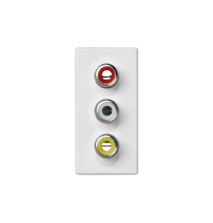 Mecanismo K45 1/2 módulo con 3 conectores RCA en la parte frontal y bornero a tornillo en la parte trasera sin necesidad de soldar.
