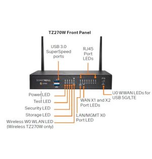 Protección contra malware: El TZ 270 integra tecnologías avanzadas de protección contra malware, como sandboxing y análisis en la nube, para detectar y bloquear amenazas en tiempo real.