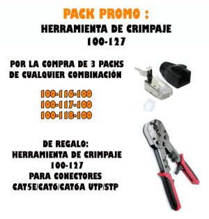 Pack Promo: Por la compra de 3 Packs de cualquier combinación 100-116, 100-117, 100-118, regalo de 1 crimpadora Excel RJ45 UTP