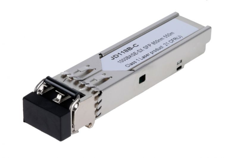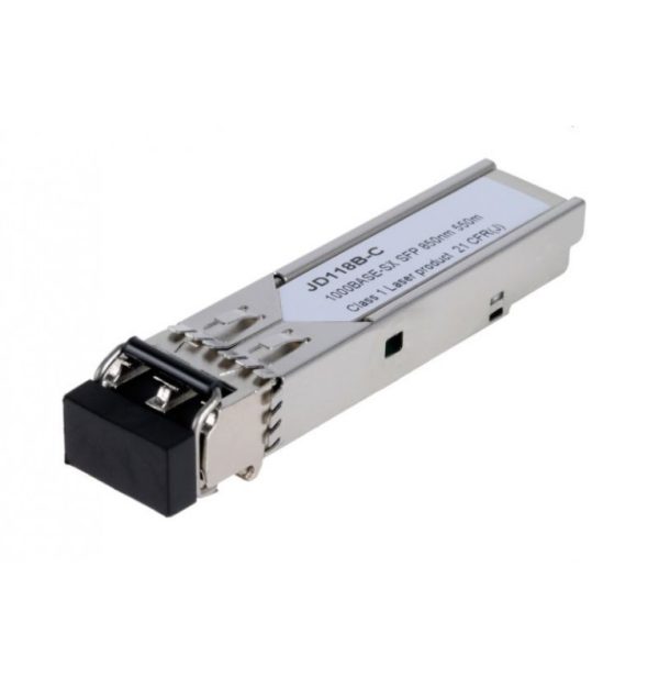 Transceiver SFP (Small Form Factor) 1000Base-SX compatible HP JD118B conector LC dúplex. Para transmisión sobre fibra óptica multimodo en 1ª ventana 850 nm, distancia 200-500 mdependiendo tipo de fibra. DOM. Ref.JD118B-C